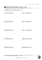 10までの数の足し算・引き算◆3つの数のたし算(繰上なし) ↑ クリックすると ダウンロードできます ↑ クリックすると ダウンロードできます 例)9-2-6、7-2-3 もっともっとたくさん、お子様に この問題の練習をさせたいと思いませんか? 『ポッ!プりんと』は、 数字だけが違う問題プリントを、 何枚でも印刷できます! こちらへGo!