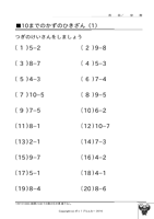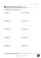10までの数の足し算・引き算◆10までの数-1桁の数(繰下なし) ↑ クリックすると ダウンロードできます ↑ クリックすると ダウンロードできます 例)9-3、10-2 もっともっとたくさん、お子様に この問題の練習をさせたいと思いませんか? 『ポッ!プりんと』は、 数字だけが違う問題プリントを、 何枚でも印刷できます! こちらへGo!