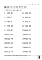 100までの数の引き算◆5の倍数同士のひき算 ↑ クリックすると ダウンロードできます ↑ クリックすると ダウンロードできます 例)25-15、85-65 もっともっとたくさん、お子様に この問題の練習をさせたいと思いませんか? 『ポッ!プりんと』は、 数字だけが違う問題プリントを、 何枚でも印刷できます! こちらへGo!