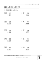 100までの数の足し算◆[筆算]2桁の数+2桁の数(繰上なし) ↑ クリックすると ダウンロードできます ↑ クリックすると ダウンロードできます 例)15+63、78+21 もっともっとたくさん、お子様に この問題の練習をさせたいと思いませんか? 『ポッ!プりんと』は、 数字だけが違う問題プリントを、 何枚でも印刷できます! こちらへGo!