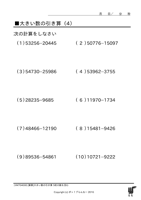 大きい数の足し算・引き算◆[筆算]5桁の数から引く ↑ クリックすると ダウンロードできます ↑ クリックすると ダウンロードできます 例)63523-3518、51612-35 もっともっとたくさん、お子様に この問題の練習をさせたいと思いませんか? 『ポッ!プりんと』は、 数字だけが違う問題プリントを、 何枚でも印刷できます! こちらへGo!