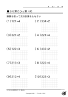 掛け算◆[筆算]3桁の数×1桁の数(繰上なし) ↑ クリックすると ダウンロードできます ↑ クリックすると ダウンロードできます 例)322×3、212×4 もっともっとたくさん、お子様に この問題の練習をさせたいと思いませんか? 『ポッ!プりんと』は、 数字だけが違う問題プリントを、 何枚でも印刷できます! こちらへGo!