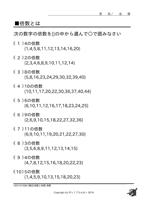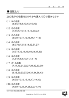 倍数・約数◆倍数とは ↑ クリックすると ダウンロードできます ↑ クリックすると ダウンロードできます 例)倍数を選びなさい もっともっとたくさん、お子様に この問題の練習をさせたいと思いませんか? 『ポッ!プりんと』は、 数字だけが違う問題プリントを、 何枚でも印刷できます! こちらへGo!