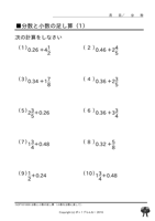 分数と小数の足し算・引き算◆足し算 ↑ クリックすると ダウンロードできます ↑ クリックすると ダウンロードできます 例)1.2+3/5、0.6+1/4 もっともっとたくさん、お子様に この問題の練習をさせたいと思いませんか? 『ポッ!プりんと』は、 数字だけが違う問題プリントを、 何枚でも印刷できます! こちらへGo!