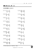 分数の足し算・引き算◆足し算(真分数のみ、分母が異なる)