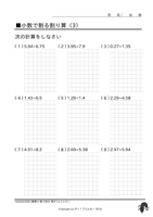 小数で割る割り算◆[筆算]割り切れるまで ↑ クリックすると ダウンロードできます ↑ クリックすると ダウンロードできます 例)0.62÷0.4=1.55 もっともっとたくさん、お子様に この問題の練習をさせたいと思いませんか? 『ポッ!プりんと』は、 数字だけが違う問題プリントを、 何枚でも印刷できます! こちらへGo!