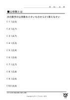 倍数・約数◆最小公倍数とは ↑ クリックすると ダウンロードできます ↑ クリックすると ダウンロードできます 例)2、3、4の 最小公倍数は12 もっともっとたくさん、お子様に この問題の練習をさせたいと思いませんか? 『ポッ!プりんと』は、 数字だけが違う問題プリントを、 何枚でも印刷できます! こちらへGo!