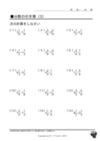 分数の足し算・引き算◆引き算(真分数のみ、分母が異なる)