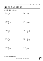 分数の掛け算◆分数×整数(最初に約分可) ↑ クリックすると ダウンロードできます ↑ クリックすると ダウンロードできます 例)3/5×15、3/8×12 もっともっとたくさん、お子様に この問題の練習をさせたいと思いませんか? 『ポッ!プりんと』は、 数字だけが違う問題プリントを、 何枚でも印刷できます! こちらへGo!